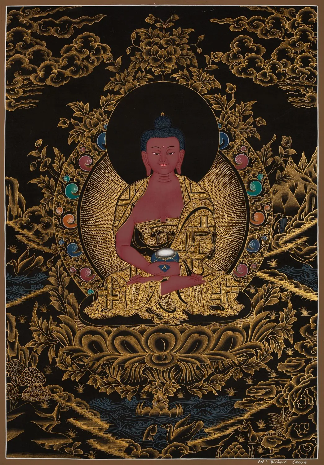 | Material | Pure 24 Carat Gold,Gouache and acrylic colors on Cotton Canvas |
