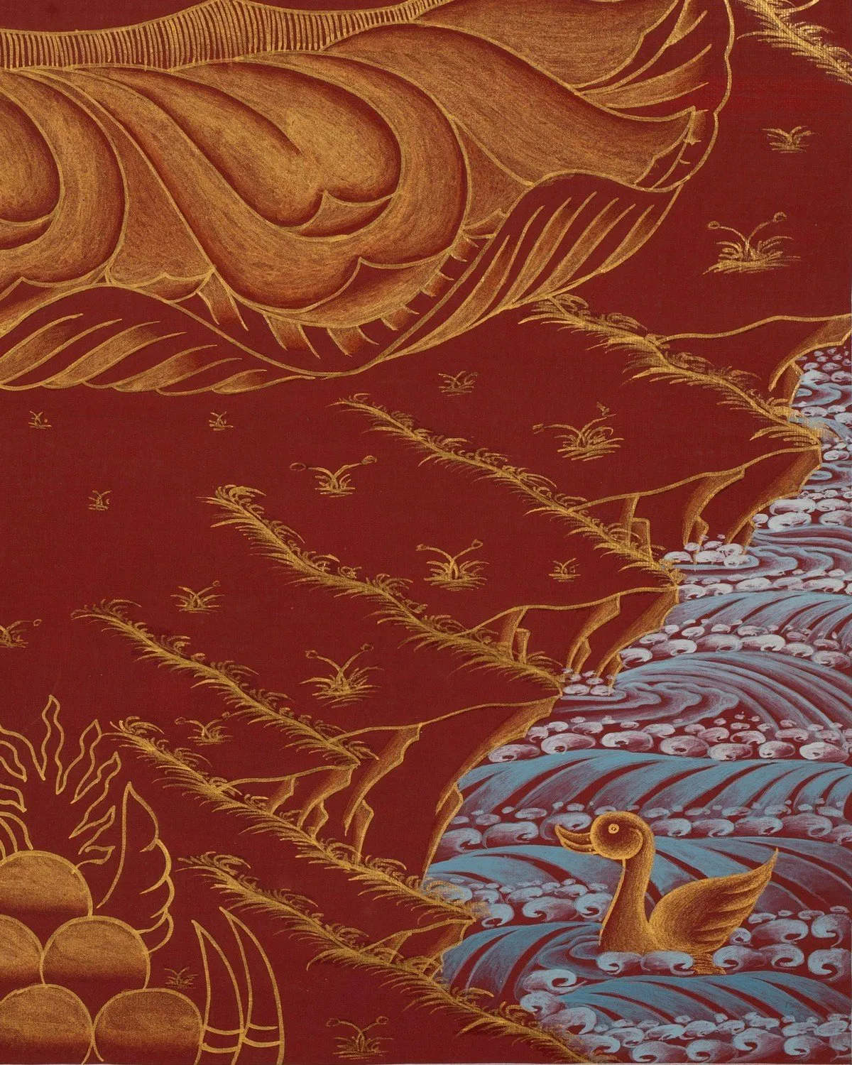 Material Pure 24 Carat Gold,Gouache and acrylic colors on Cotton Canvas