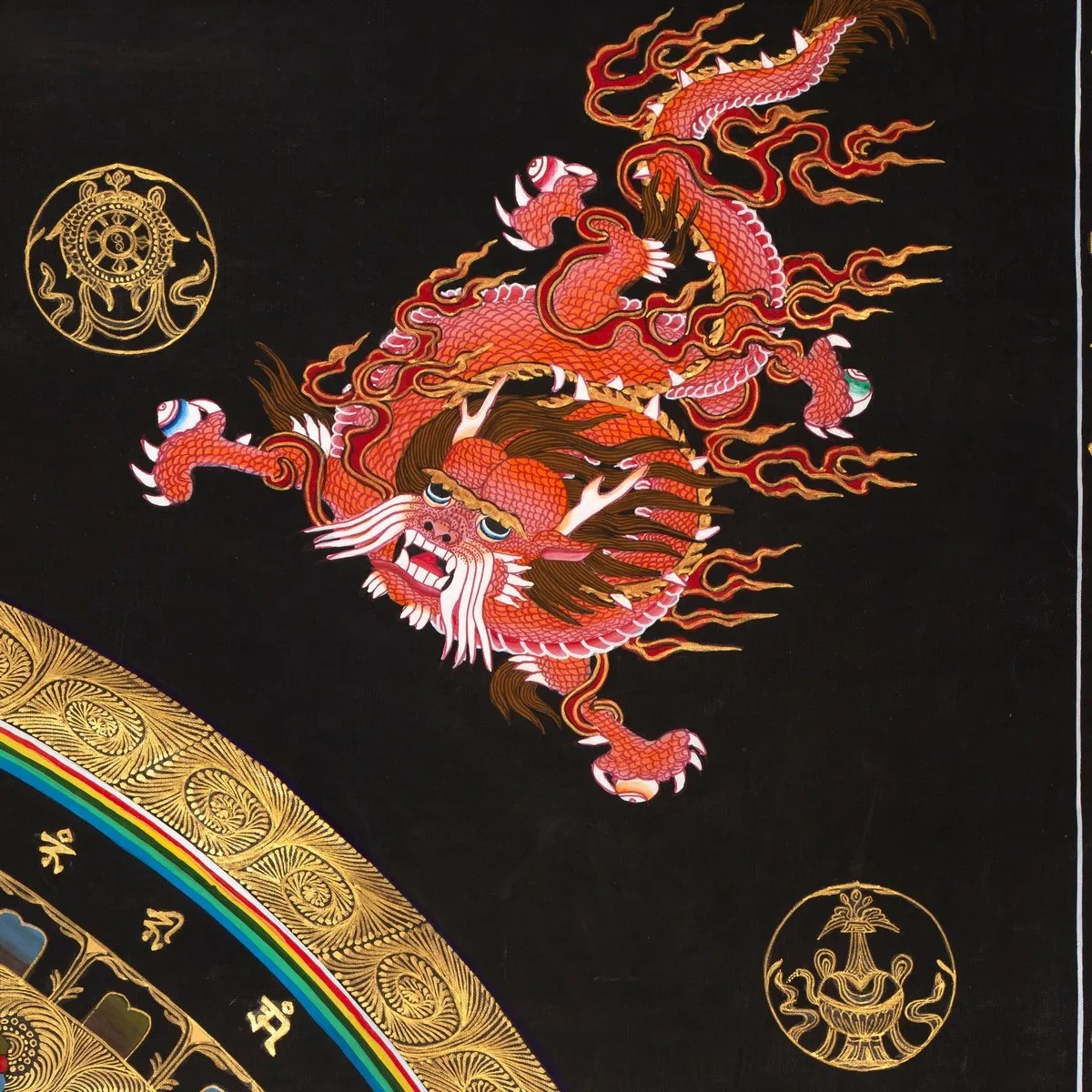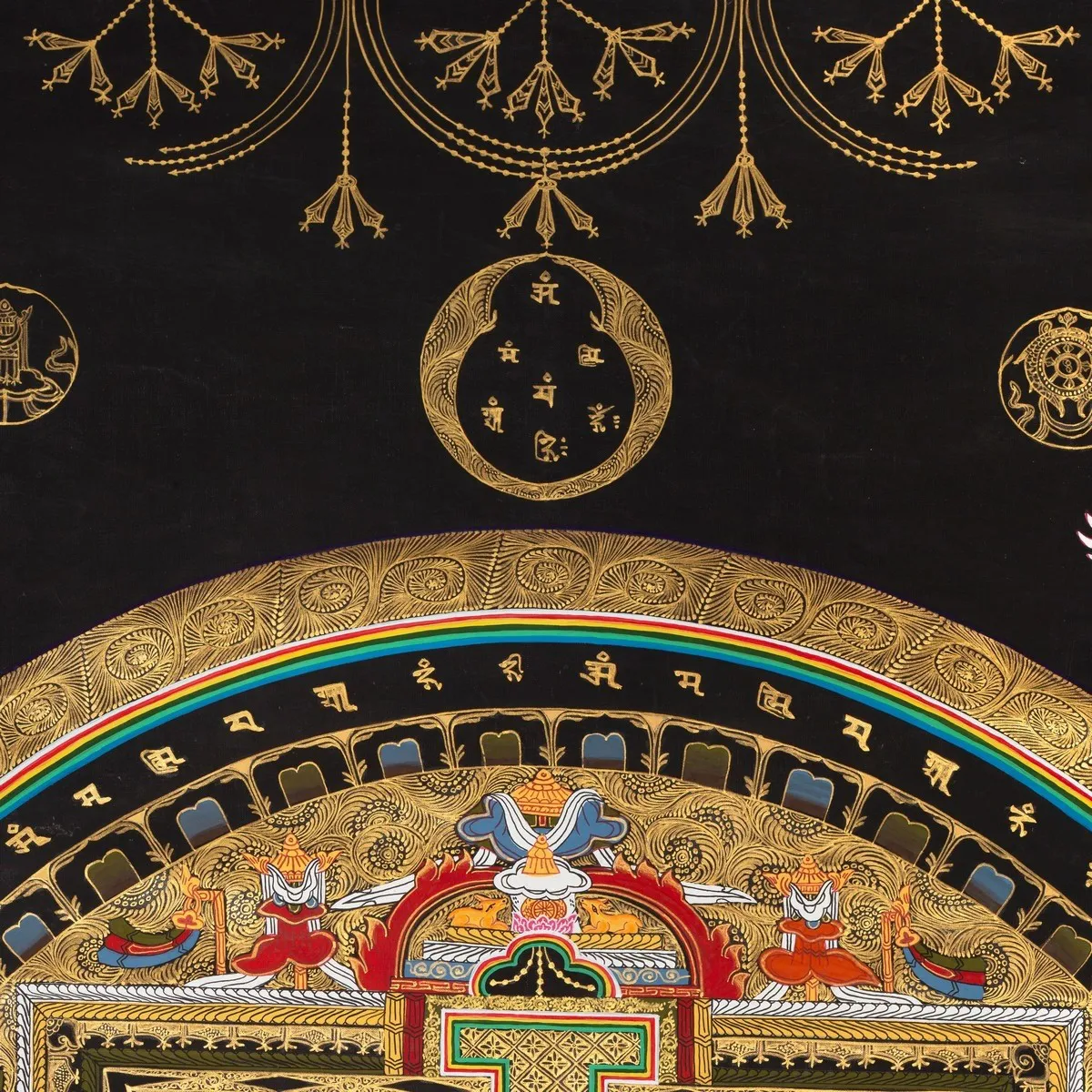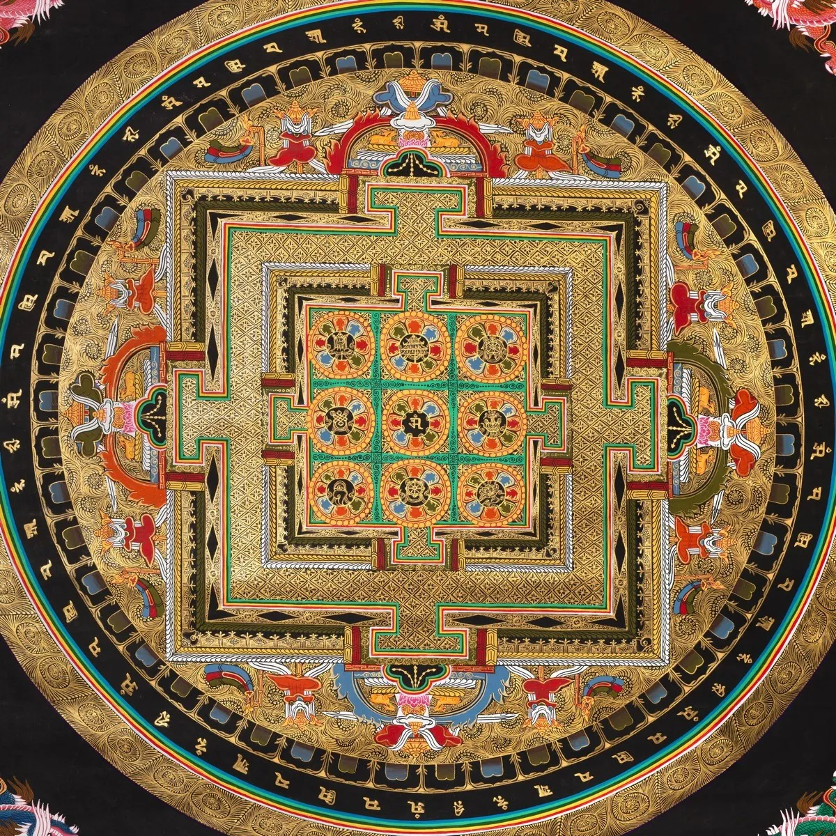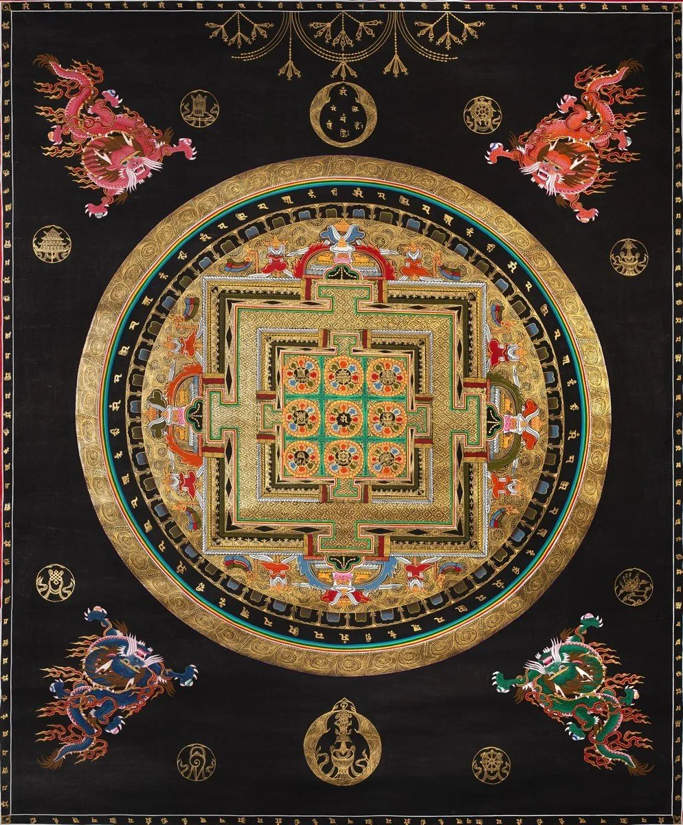 Auspicious Mandala with 24 carat gold work (Brocadeless Thangka)