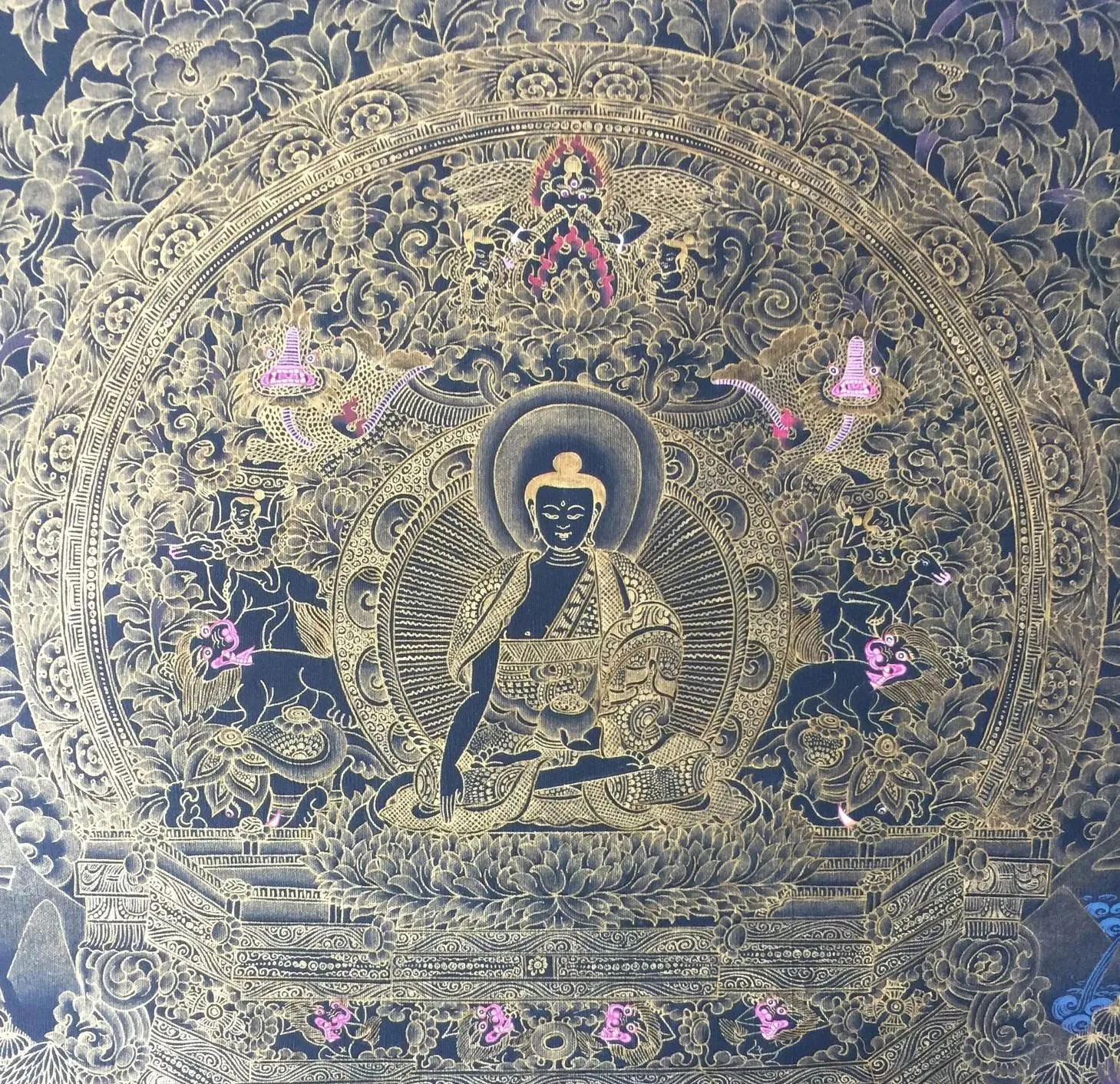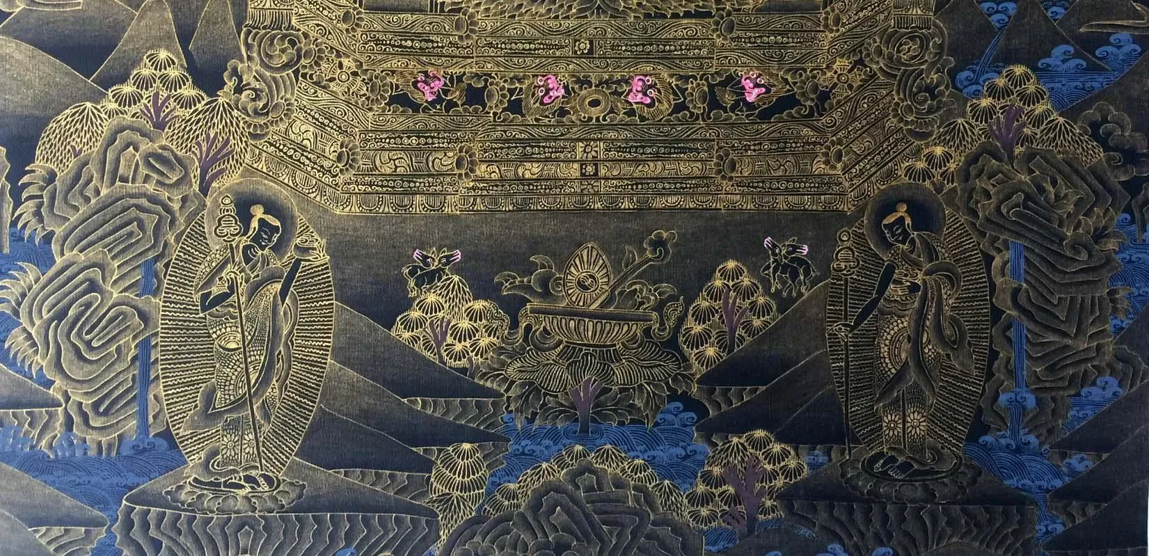 | Material | Pure 24 Carat Gold,Gouache and acrylic colors on Cotton Canvas |