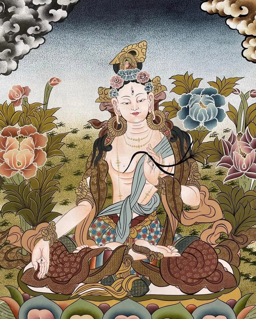 With herseven eyes, she gazes upon the world, seeing suffering from every angle andresponding with unfailing compassion. As a symbol of hope and longevity,devotees seek her name in prayers and visualizations, she is invoked tocultivate compassion for overall well-being.