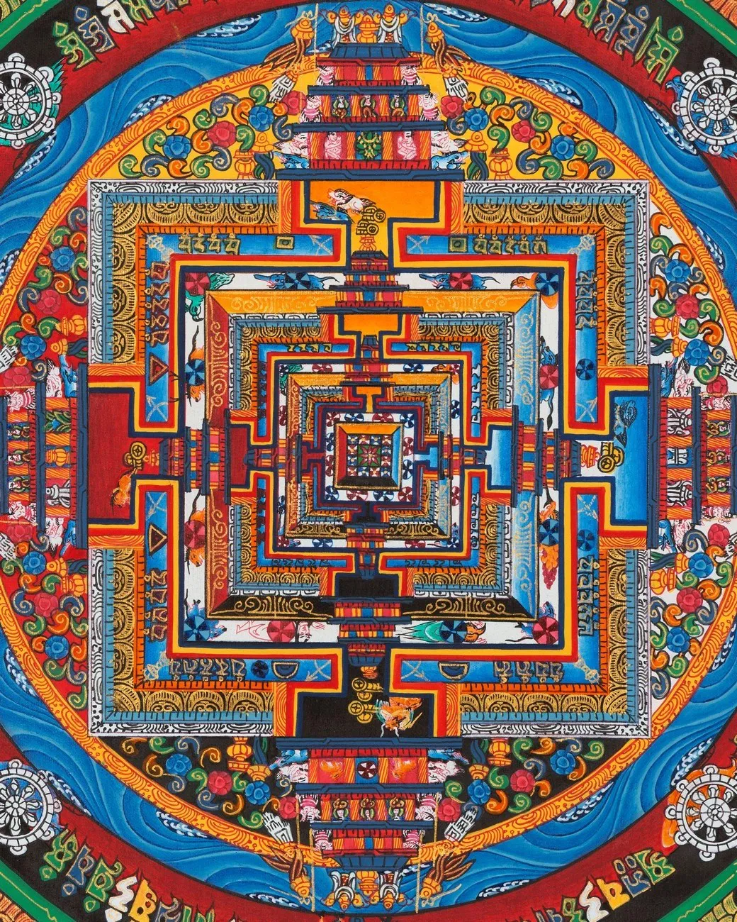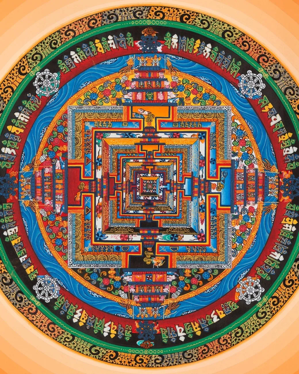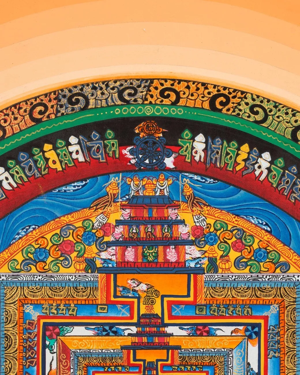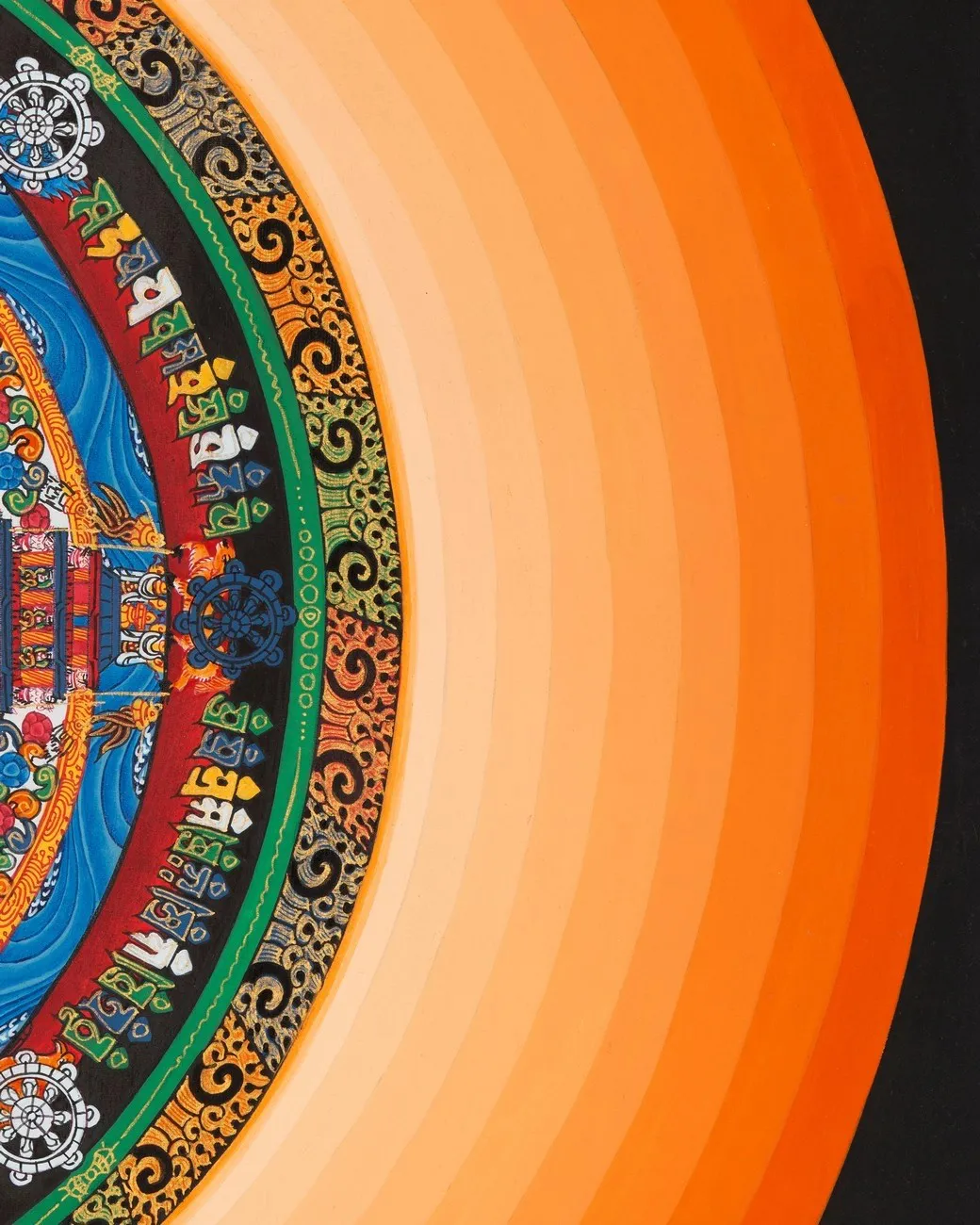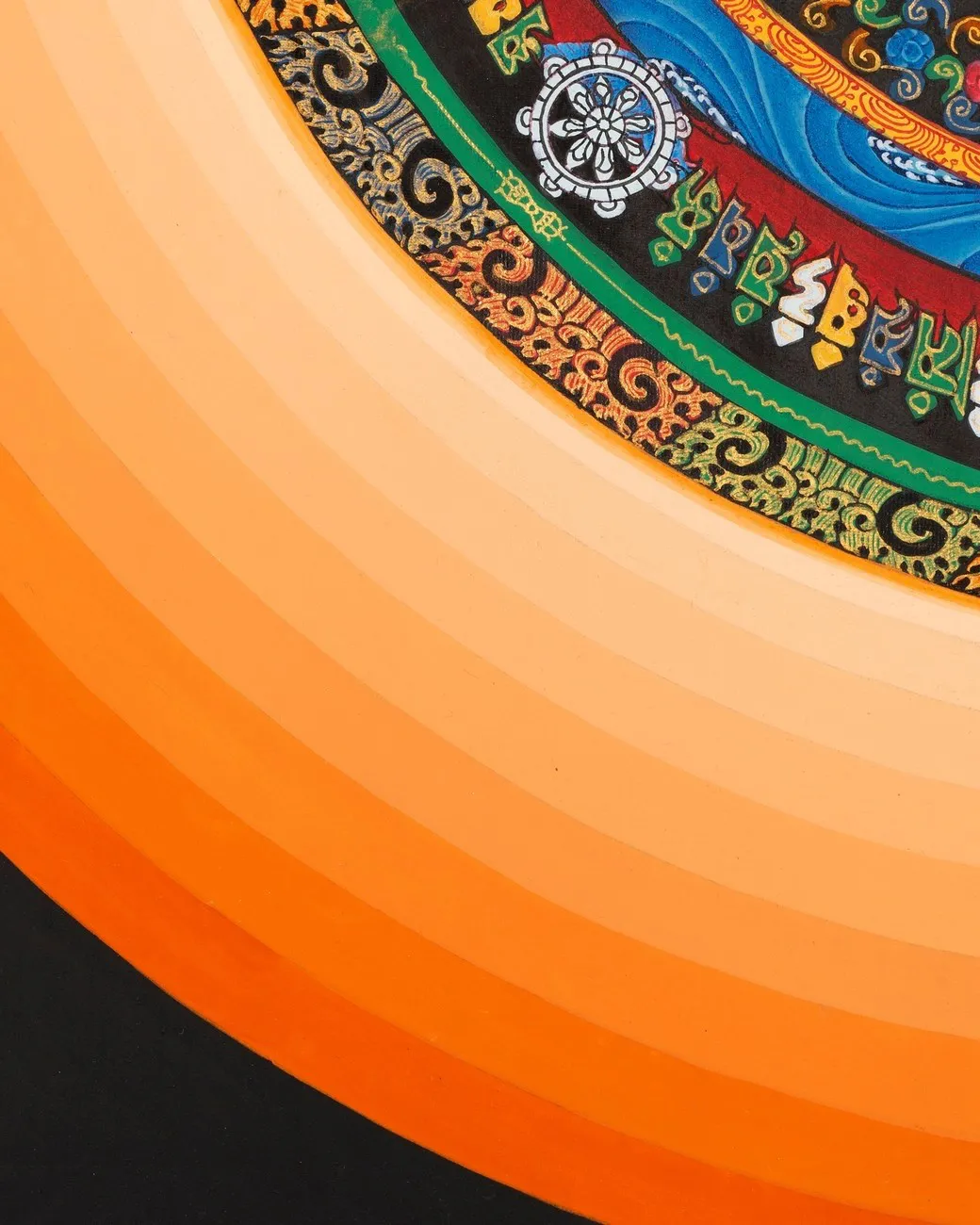 From Mandala collection, Kalachakra - Part of Life Mandala with Halo (Brocadeless Thangka) (Pure 24 Carat Gold,Gouache and acrylic colors on Cotton Canvas)