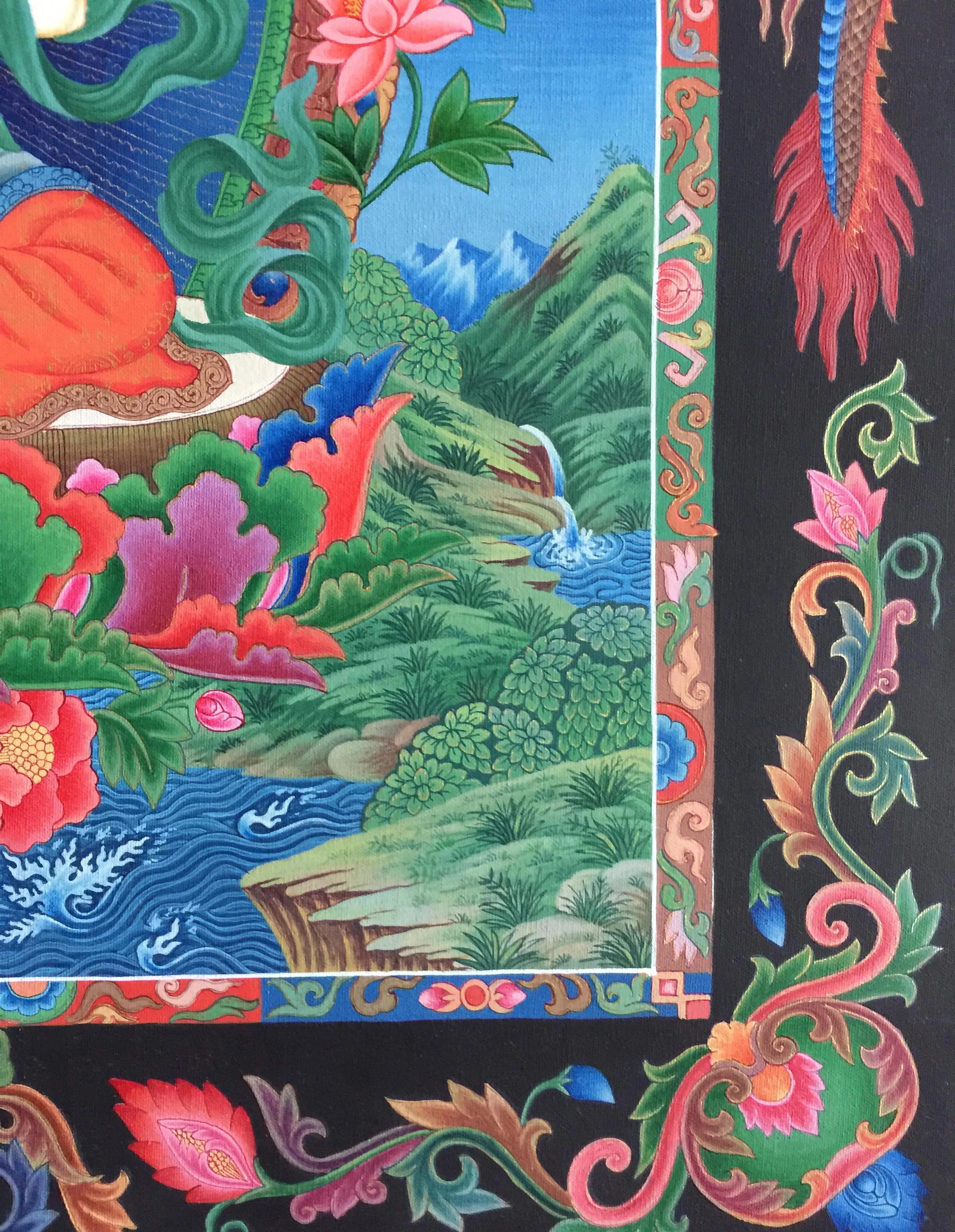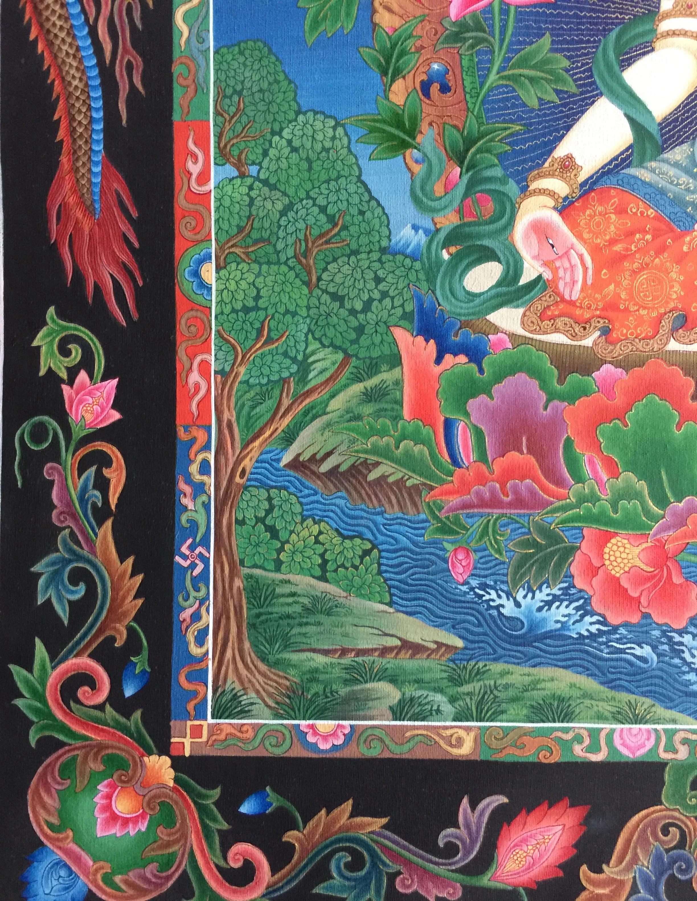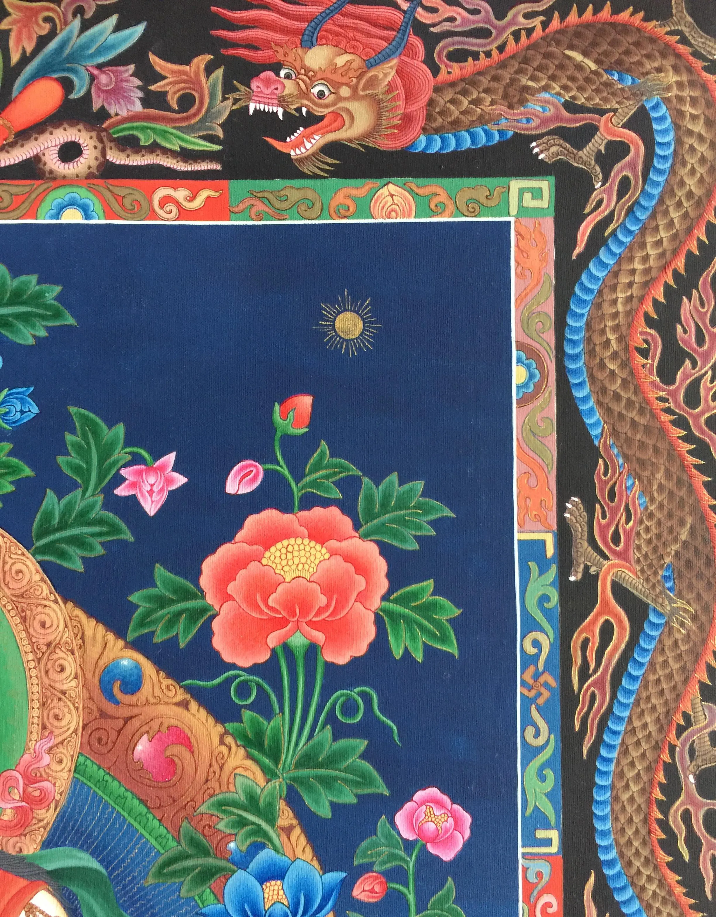 Adorned with divinejewels, White Tara's aesthetic magnificence transcends the material realm. Eachjewel symbolizes spiritual treasures of virtue and wisdom, highlighting theinner wealth sought on the path to enlightenment. The harmonious interplay of thesesymbolic elements in White Tara's iconography invites devotees on a profoundspiritual journey, connecting with the ideals of compassion, longevity, andhealing that she gracefully embodies. Her divine form serves not just as anartistic representation but as a visual mantra, guiding seekers through thesacred landscapes of their spiritual awakening.
