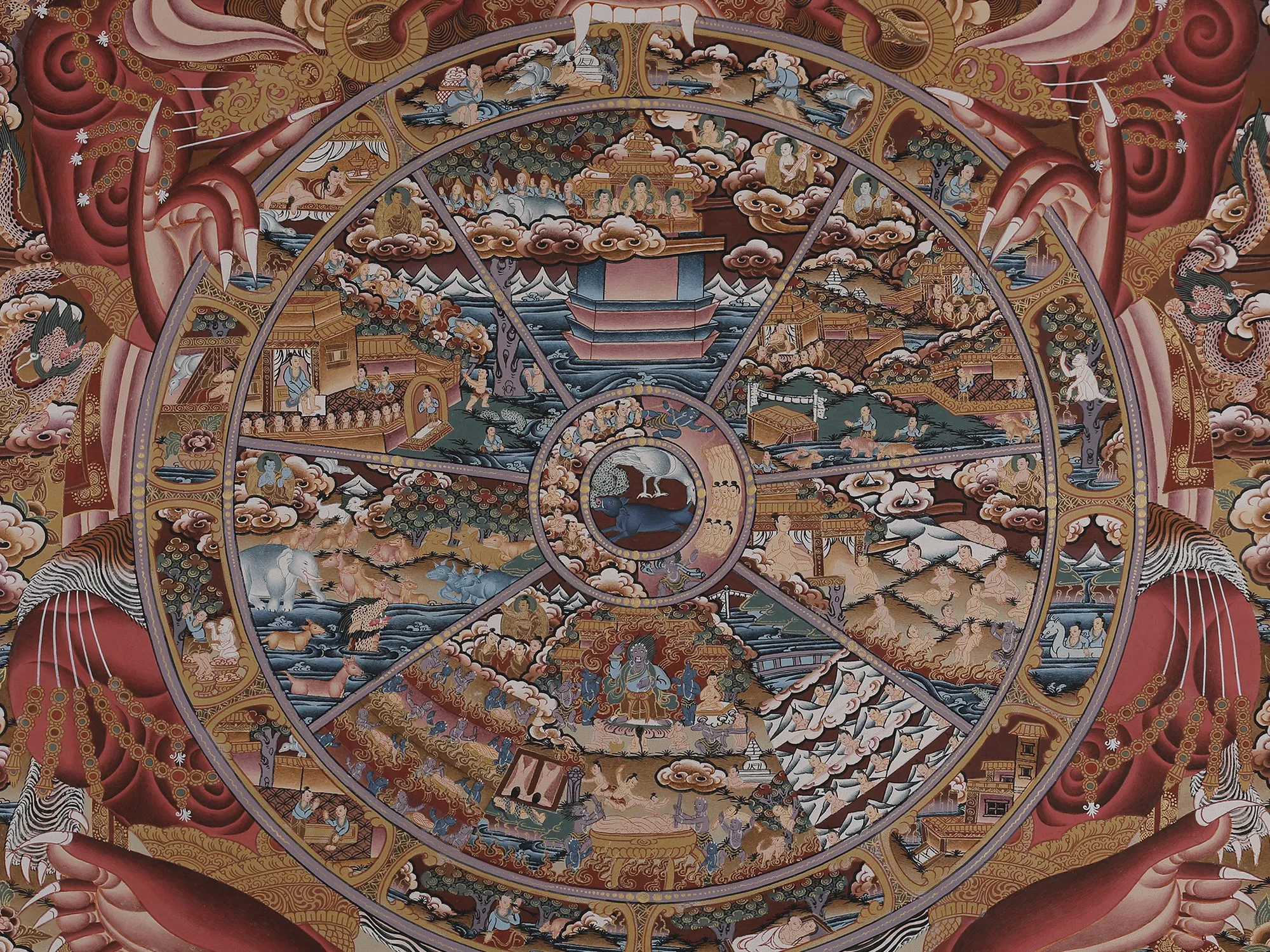 Together, the Wheel ofLife and the concept of Bardo offer a framework to comprehend the cyclic natureof existence and the pursuit of spiritual enlightenment in Buddhism. They serveas compelling visual tools, providing insights into the intricacies of life'scycle and the journey toward spiritual growth and liberation.