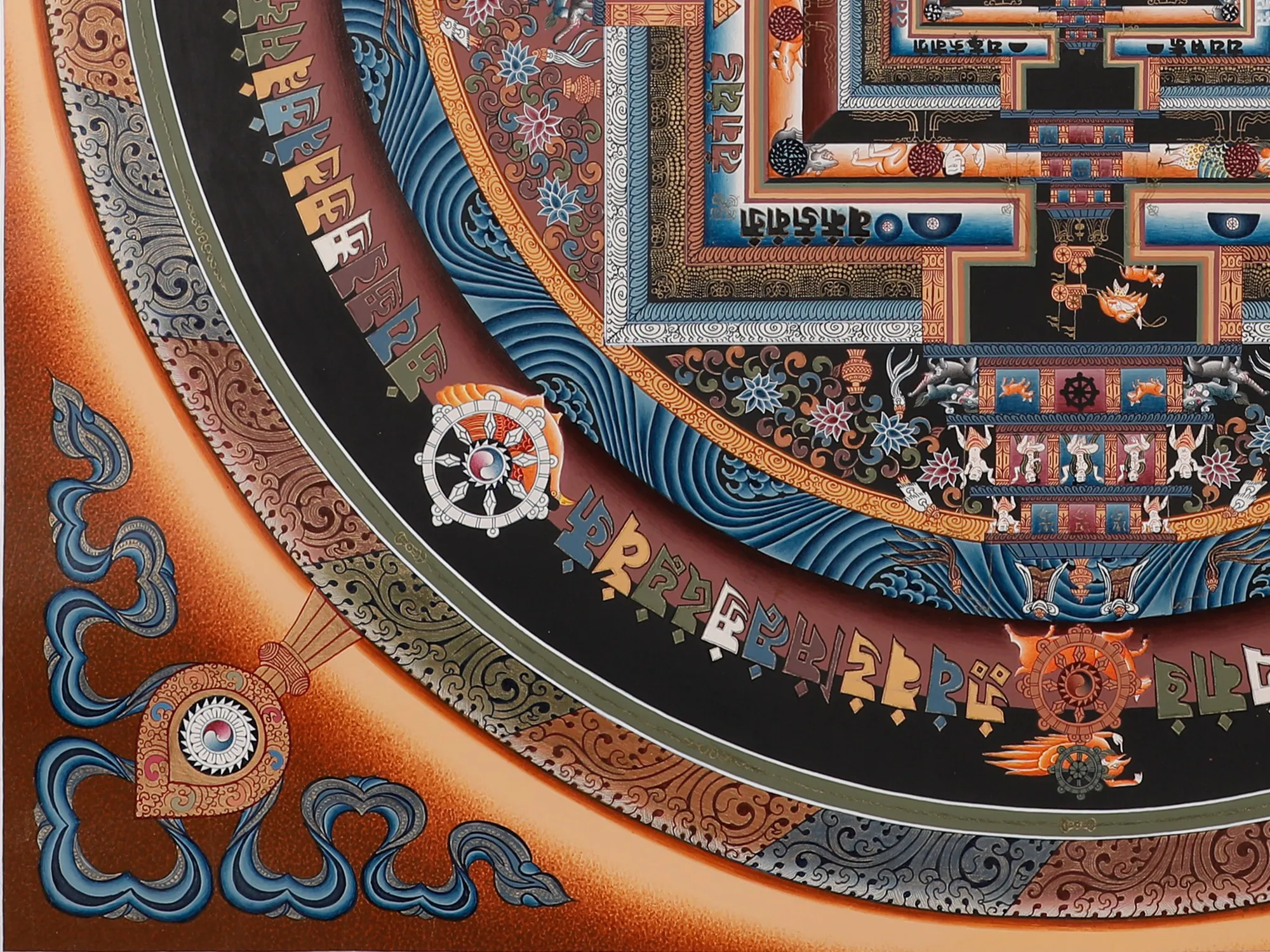 The respected andmagnificent Kalchakra Mandala Thangkas are an important achievement of Tibetan Buddhism. This spiritualmasterpiece is a visual representation of the Kalachakra Tantra, asophisticated Buddhist doctrine that covers a wide range of topics related tocosmology, meditation, and the path to enlightenment. The Kalchakra MandalaThangka is a meditation tool that practitioners use to better understand theKalchakra Tantra and its teachings as they consider its numerous details andsymbolism. It also has a crucial role in the Kalachakra empowerment, whichTibetan Buddhist lamas use as a powerful initiation ritual. The TibetanBuddhist tradition uses it in ornate rituals and celebrations.