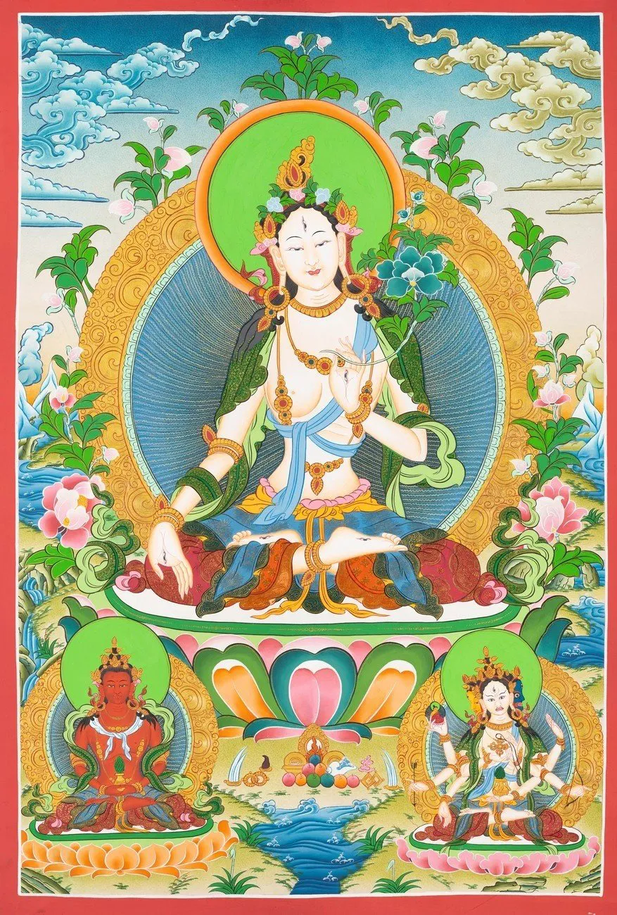 White Tara Thangka (Brocadeless Thangka)