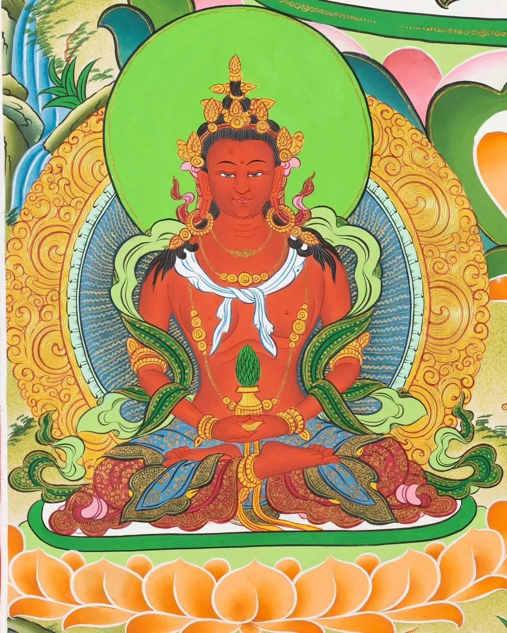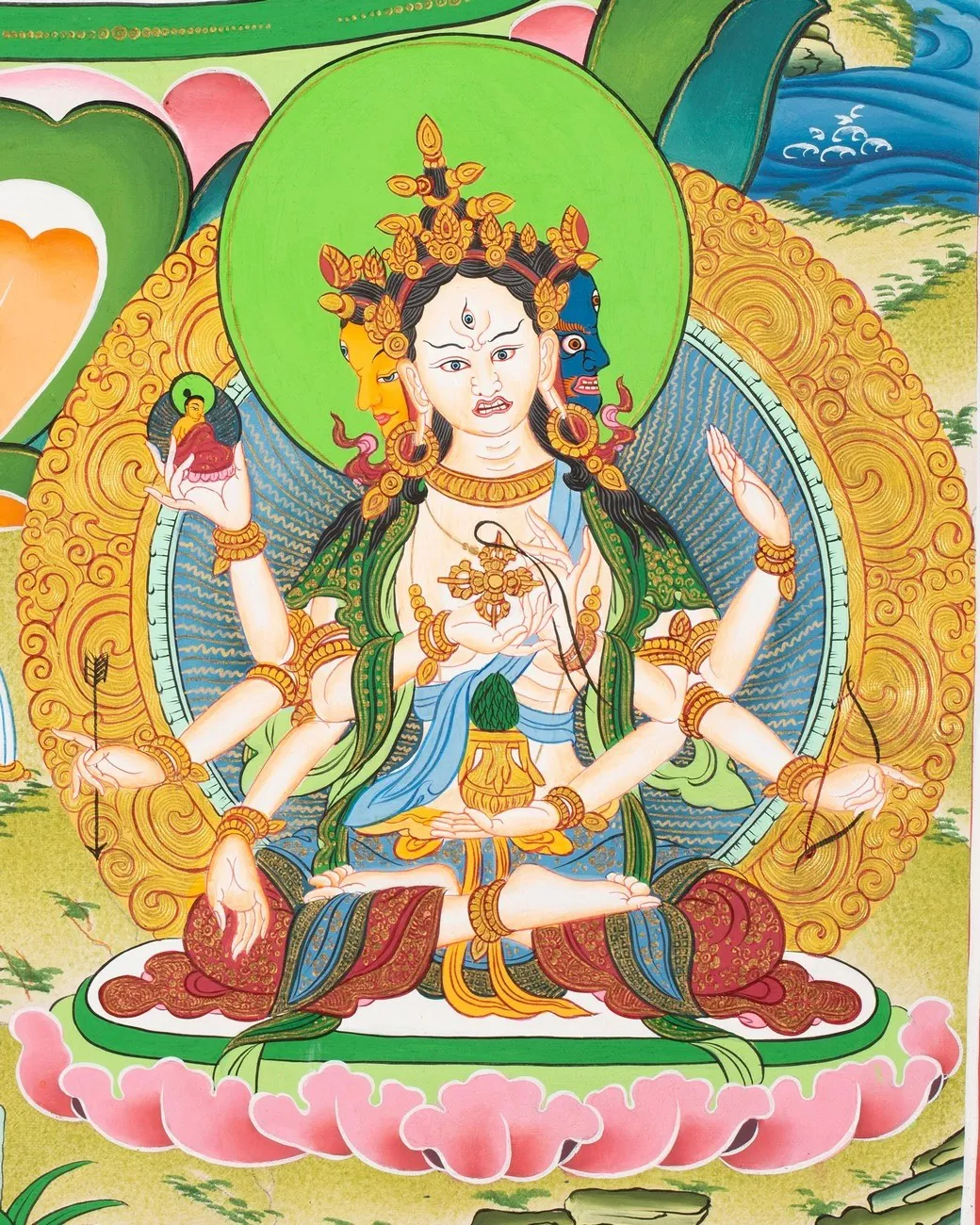 From White Tara collection, White Tara Thangka (Brocadeless Thangka) (Pure 24 Carat Gold,Gouache and acrylic colors on Cotton Canvas)